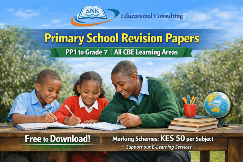 Schools Net Kenya offers Term 3, 2025 Primary School revision papers for PP1 to Grade 7, covering all learning areas under the CBC curriculum. The revision papers are free to download, while marking schemes cost KES 50 per subject to support our e-learning services. Grade 3 Revision Papers End Term 3 2025 grade 3 english…