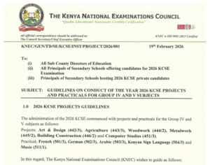 The Kenya National Examinations Council (KNEC) has released the official Guidelines on Conduct of 2026 KCSE Group 4 & 5 Subjects. This circular provides detailed instructions on the administration, supervision, project handling, practical components, and compliance requirements for the affected subjects under the Kenya Certificate of Secondary Education (KCSE). Schools are required to strictly adhere to the outlined procedures to ensure integrity, standardization, and proper conduct of the 2026 examinations.