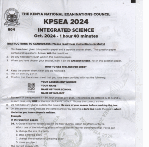 The KPSEA 2024 Integrated Science Revision Paper is now available on the SNK Portal. Administered by the Kenya National Examinations Council under the Kenya Primary School Education Assessment framework, this paper helps Grade 6 learners strengthen their understanding of life, physical, and earth science concepts. The question paper is free of charge, while the marking scheme is available at KSh 50 for a single paper and KSh 100 for the complete set.